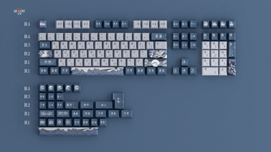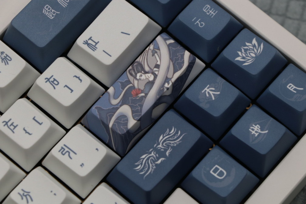 個性部分:黛藍作為整套鍵帽的配色,遠山如黛,近水含煙,是古人的醉意和設計師的最愛的現代邂逅。