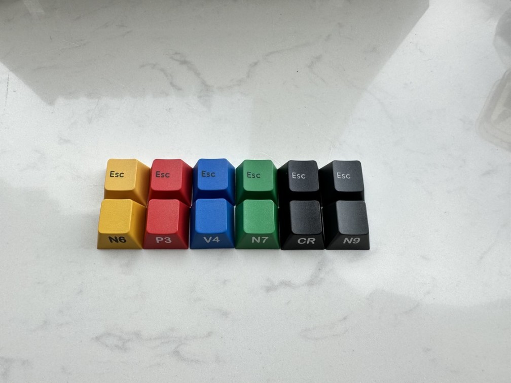 這款鍵帽雖然配色很豐富,但整體給人的感覺還是暗色基調為主,其餘顏色點綴其中,很像是暗夜模式的系統操作界面,以黑灰為主。同時在顏色選擇上,選的都是較深、純粹的顏色,非常惹眼。