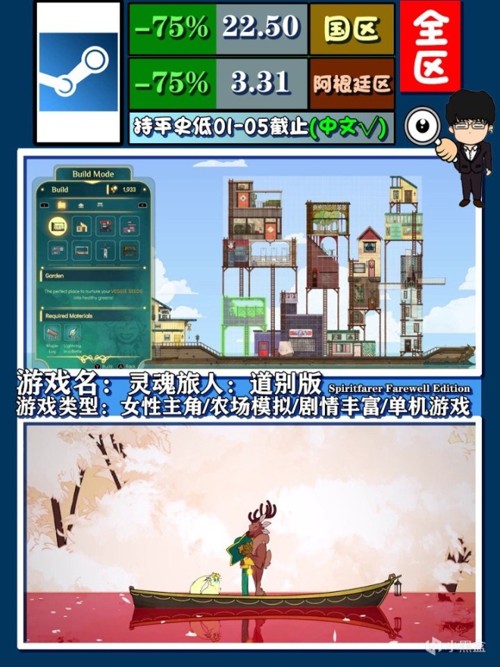 《靈魂旅人:道別版》,卡通畫風,唯美音樂,淚點很低的玩家朋友們建議入手玩備好紙巾,對老基德來說,這是一款難得的治癒游戲,除了劇情的淚點較多外,附帶一些休閑管理元素,可以在消磨時間的同時起到舒壓的作用