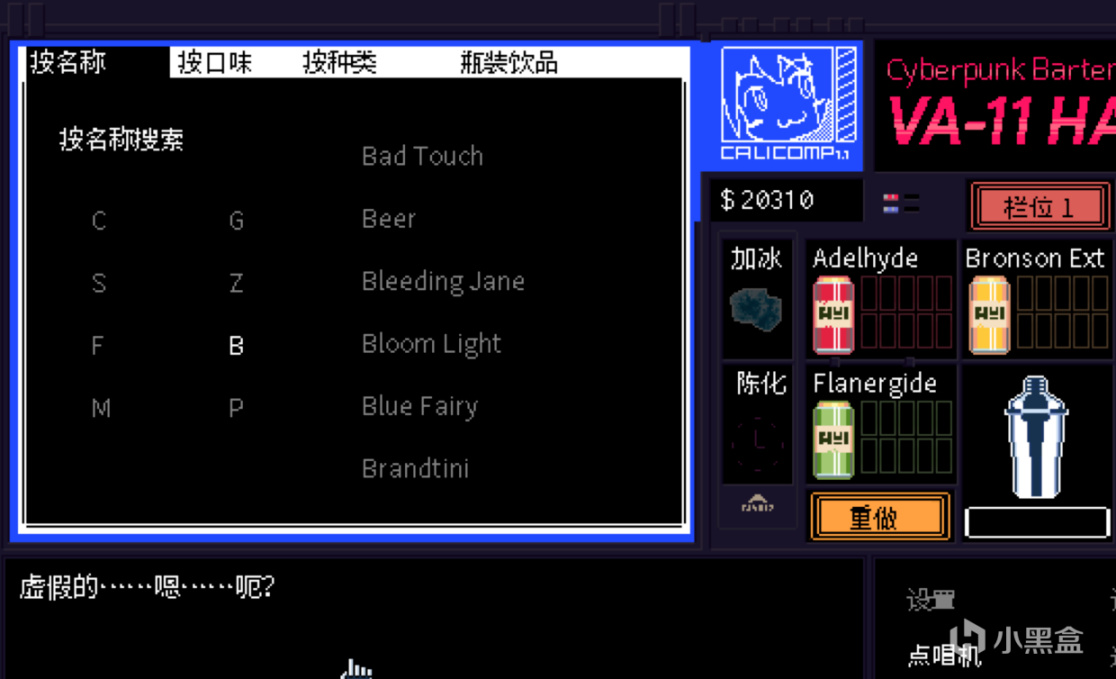 遊戲中唯一的遊戲性也就是調酒系統,我們需要根據顧客的需求調出不同的飲料,比如甜味苦味、大杯或者小杯、是否加冰等等,有時候顧客會「巧妙」地提出他們的需求,而我們需要正確地調出他們想要的酒。