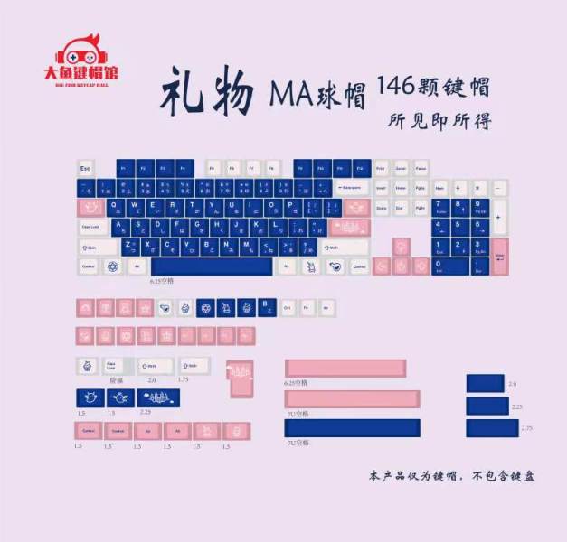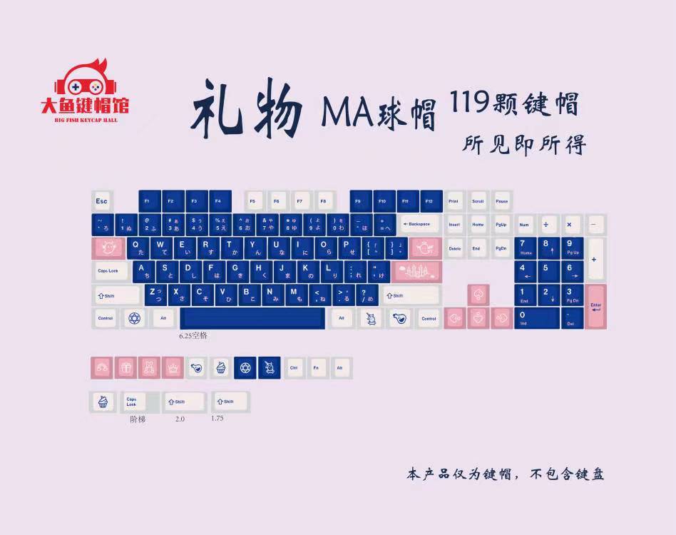 大魚鍵帽館MA高度球帽禮物PBT全五面熱升華鍵帽基礎套178元(日常208元)