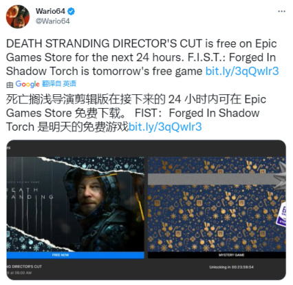 知名舅舅黨Wario64也明確了明日神秘游戲為《暗影火炬城》