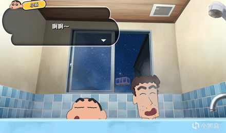 盡興玩耍之後最令人期待的,莫過於與往常一樣和爸爸一起洗澡。在貼滿舊瓷磚的浴室中能欣賞到滿天繁星。好好睡一覺,明天繼續玩個痛快吧!