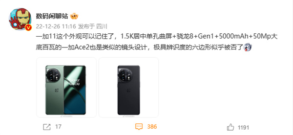 據博主「數碼閑聊站」今日透露,一加Ace 2新機會延續一加11的後攝模組設計,將會十分具有辨識度。