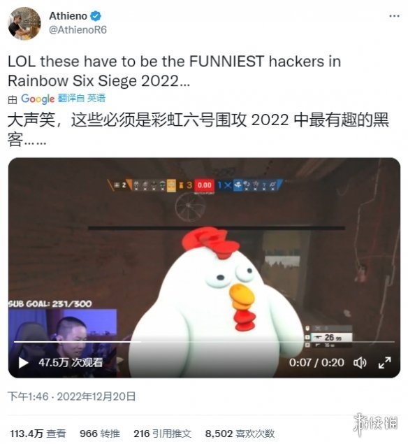 而就在這隻雞逐漸出現在更多玩家的屏幕中後,它也以一種模因的形態病毒式傳播到整個彩六社區,以往有些沉寂的社區一下子變得活躍了起來。