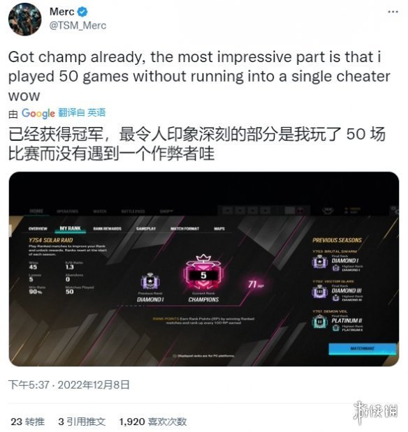 雖然目前關於QB的詳細內容尚未公布,但自從上個賽季「太陽突襲行動」發布以來,許多職業玩家都表示他們在賽季初期沒有看到作弊的玩家,看來新的反外掛程序也小有成效。