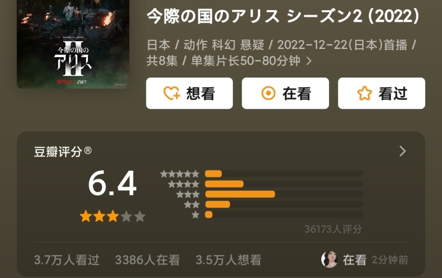 豆瓣和其他的評分軟體上面的評價趨勢一般都很有規律。一般都是凹凸不平的,最起碼也是高的高低的低。