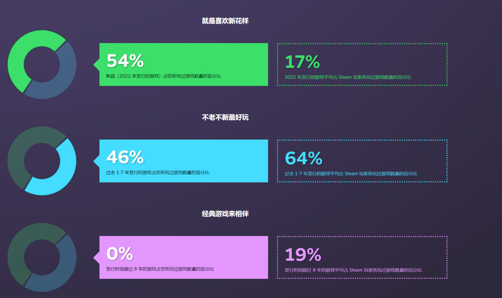 大家只要登陸自己的Steam賬號就能查看自己2022年度遊玩的遊戲數量、類型和時間等信息。
