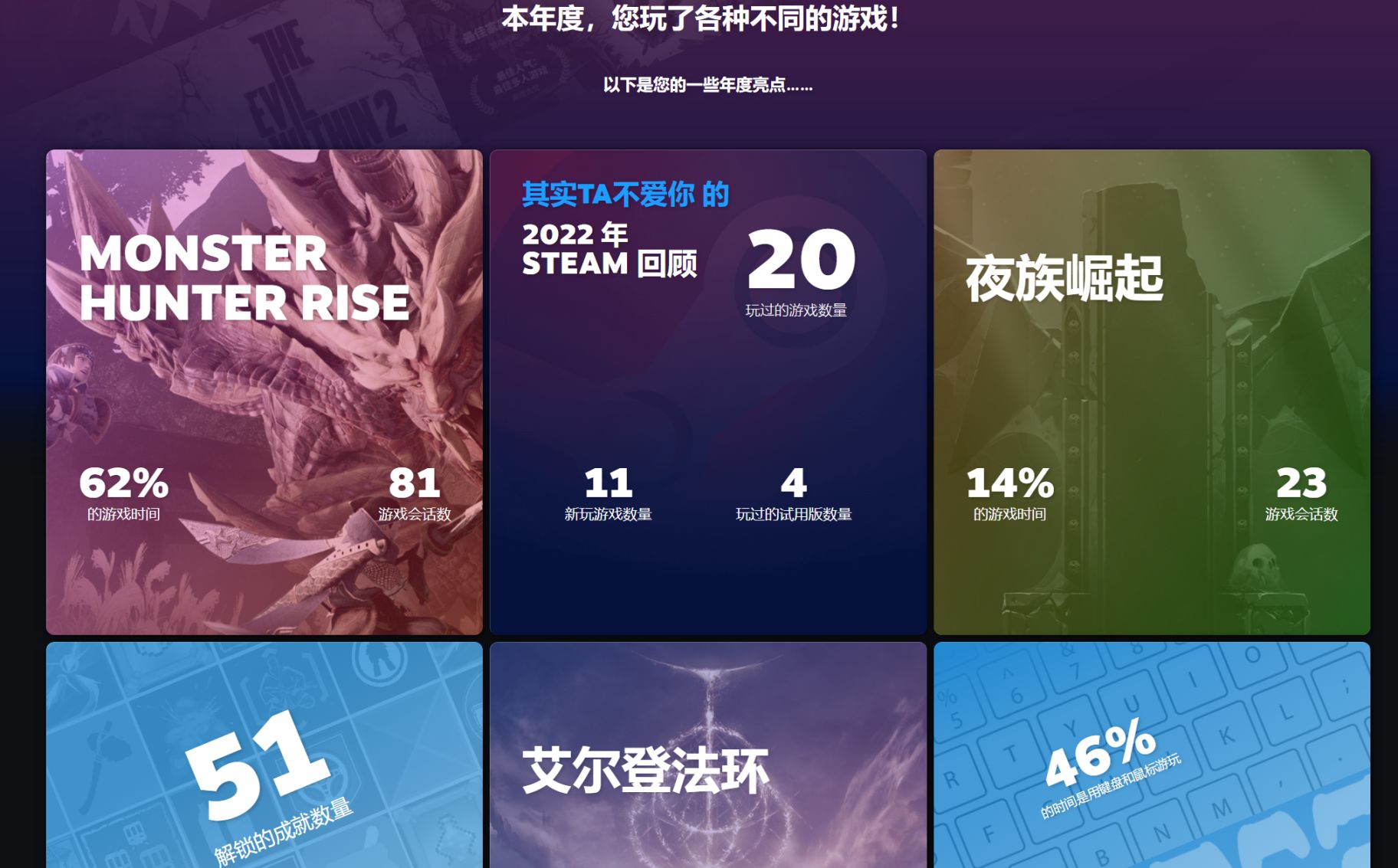 在和其他玩家對比的同時,還可以獲得「2022年Steam回顧」的徽章。