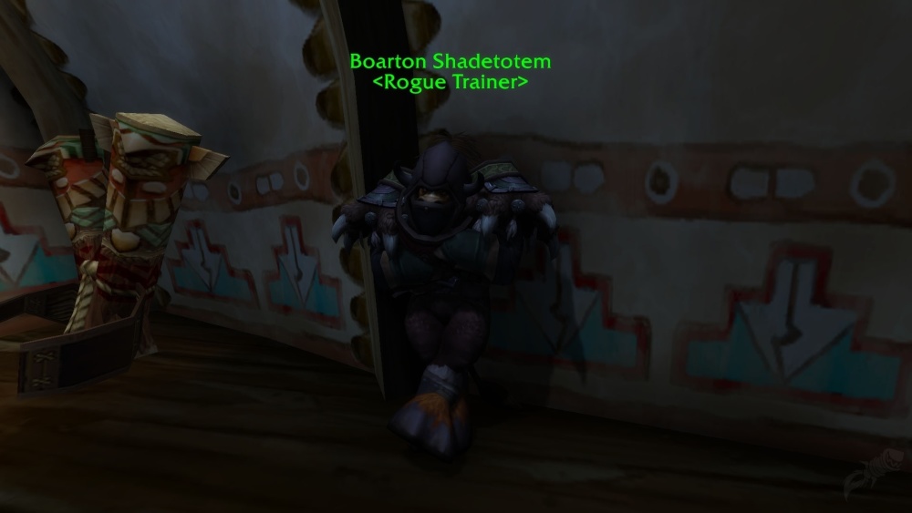 首先是雷霆崖的Boarton Shadetotem,他是戴著蒙麵皮帽子的牛頭。官方吐槽這貨一直都在,有一雙大蹄子卻很安靜,會偷偷靠近你。找他學技能還將觸發一段有趣的對話。