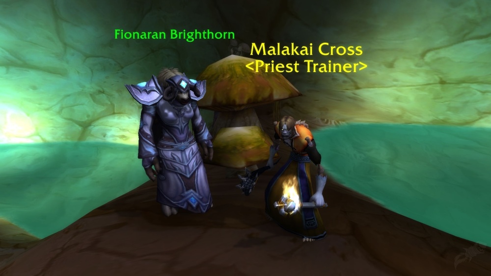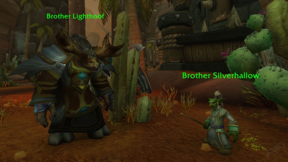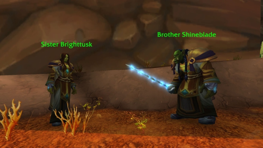 在這些NPC裡面,部落方的(獸人)牧師訓練師明顯缺少了這個職業標志的聖光效果,看起來像是山寨的,頭銜也只有「兄弟」和「姐妹」。