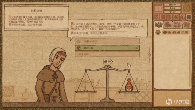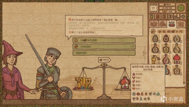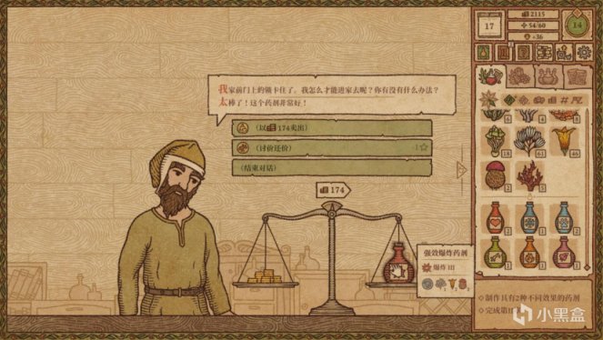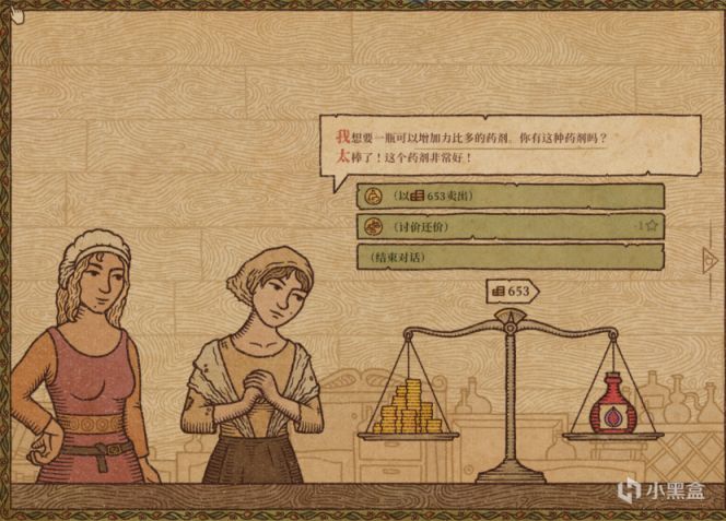 遊戲中的交易也並不簡單。砍價系統不僅能讓玩家賣葯賣得更貴,也能讓玩家買原料更便宜,有時甚至能打個對折,相當重要。
