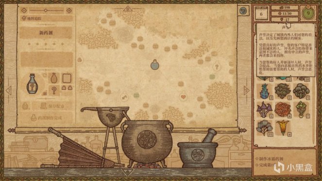 玩家每日起床首先去菜園子里收集葯材,接著去葯鋪販賣葯劑購買葯材,最後去葯劑地圖中探索一番,最後一天結束新的一天開始。玩法較為單一,沒有主線劇情的驅動僅靠尋路玩法探索重複性較高,尤其是在解鎖所有葯劑之後遊戲的壽命也就到頭了。但對於煉金愛好者而言,這款不斷探索不斷煉成的遊戲也極為上頭,古樸的羊皮卷畫風、異域的村民日常、浩如煙海的合成路線,無論是對煉金愛好者而言還是對化學愛好者而言都屬於一款必玩佳作。遊戲目前還處於開發階段,後續會有更多的內容值得期待。