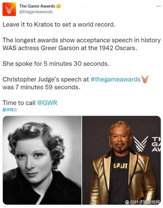 由於Christopher Judge在2022 TGA年度頒獎典禮上長達7分59秒的發言,他成了歷史上在頒獎典禮中發表演講用時最長的人。而這項紀錄的上一任保持者是電影演員Greer Garson,具體出自於1942年的奧斯卡頒獎典禮,那場獲獎致辭總共用時5分30秒。