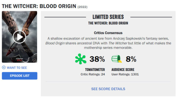 《獵魔人》前傳劇集《獵魔人:血源》已正式播出,然而本片收到了媒體與觀眾們的一致差評