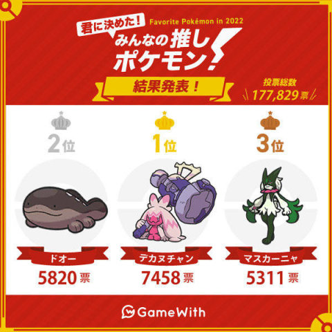 日本攻略網站GameWith公開了《寶可夢朱紫》的人氣投票結果