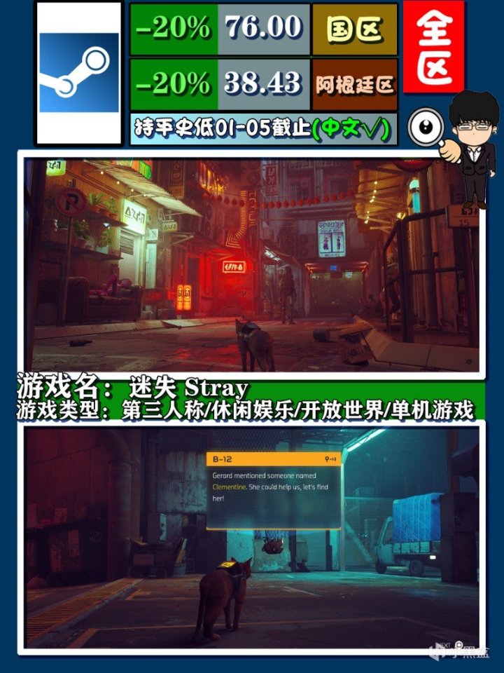 《迷失》,擼貓福音遊戲,今年TGA上風頭不小的一款獨立遊戲,熱度高到網上還有玩家自製了像素版,但不得不說的是,遊戲內容對於愛貓人士做的非常討喜,開放世界,賽博朋克,在貓的視角下體驗尋家之路,同時感受冷漠人工智慧的社會體系