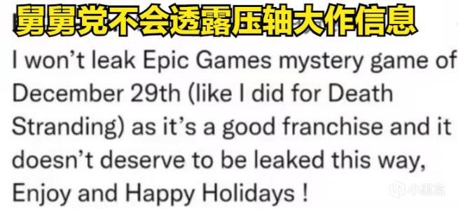 今晚零點過後,EPIC將揭開這次喜加十五最後一款壓軸大作的神秘面紗,會放出線索預告圖。去年EPIC喜加十五的壓軸大作是古墓麗影三部曲,不過去年早早就有壓軸大作的劇透,可能玩家覺得神秘感沒有那麼足。今年的喜加十五壓軸大作神秘感就有了,著名爆料舅舅黨爆料,他不會放出這次壓軸大作的線索,但提示可能會是一個系列的遊戲作品,體量跟死亡擱淺差不多。因此,接下來只能靠玩家自己盲猜了。下面是小編本人做出的一些預測,僅供參考:
