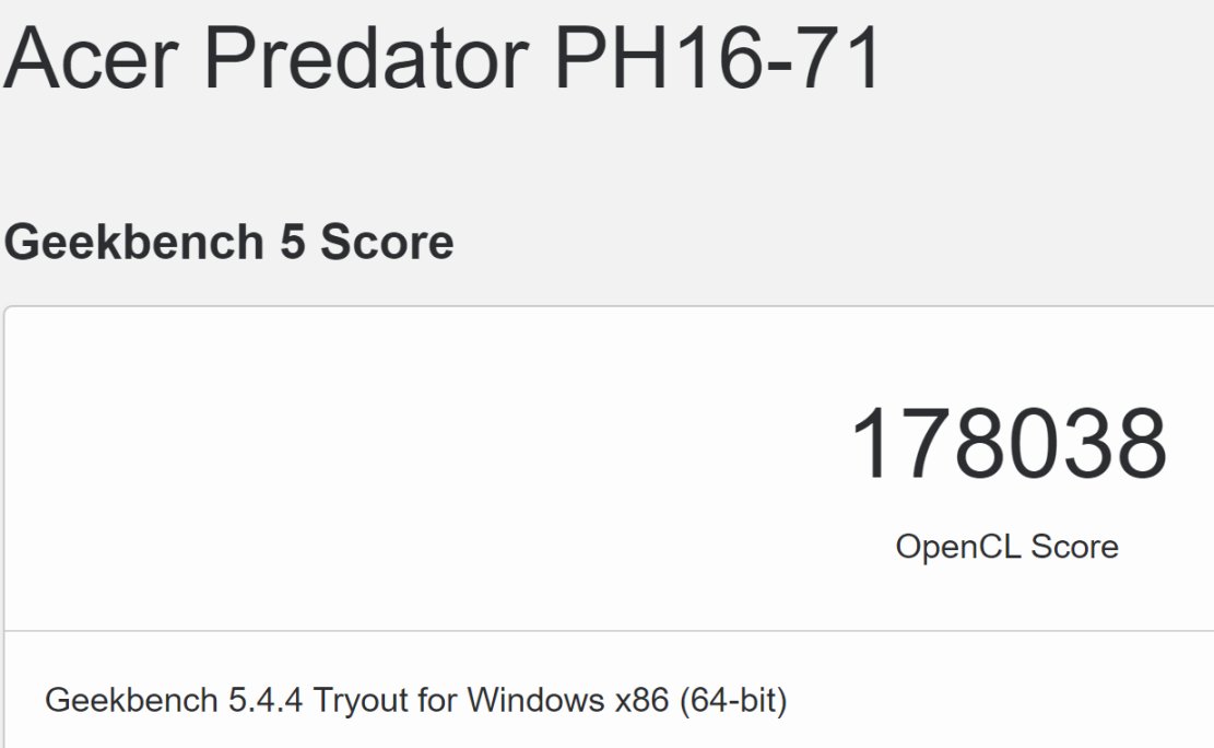 提前曝光的4080移動端性能:與現有的RTX 3080 Ti Laptop GPU進行比較,後者得分為136008分,這表明RTX 4080至少比旗艦移動Ampere GPU快30%,在同一基準測試中比RTX 3080快42%。