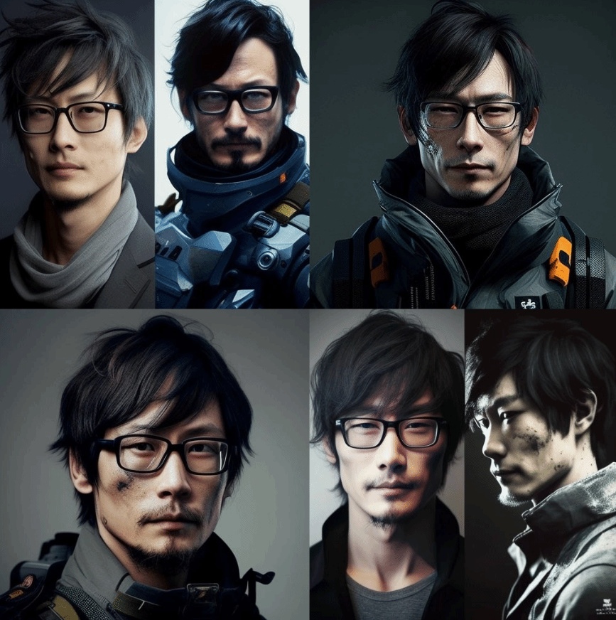 TGA官方在知曉此篇採訪內容後,分享了一組由Midjourney繪製生成的AI畫作,其中的主人公正是小島秀夫,圖中的小島秀夫依然是標誌性的斜劉海髮型和****,臉部輪廓非常細膩,服飾也似乎是從《死亡擱淺》以及《合金裝逼》中獲取了靈感。一起來看看吧!