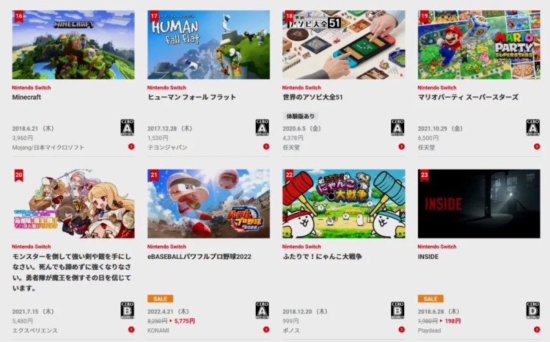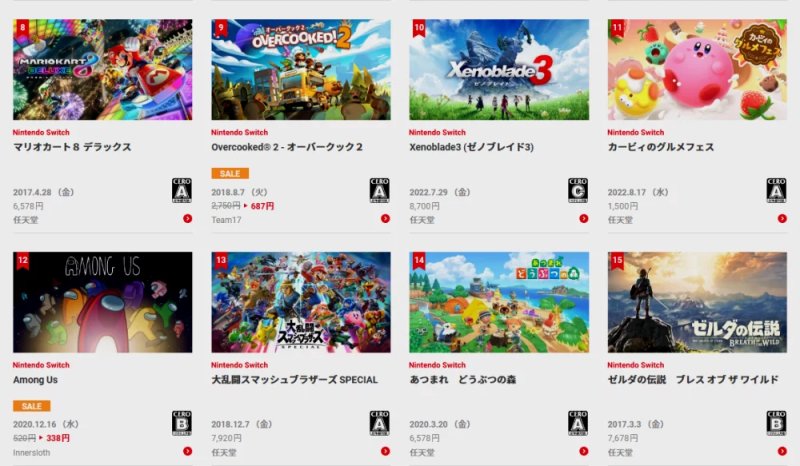 任天堂公布日服eshop年度下載排行榜