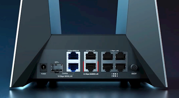 參數方面,這款路由器支持2.4GHz、5GHz、6G三頻,速度可達19Gbps。還配備了雙10Gbps 埠和雙2.5Gbps埠。