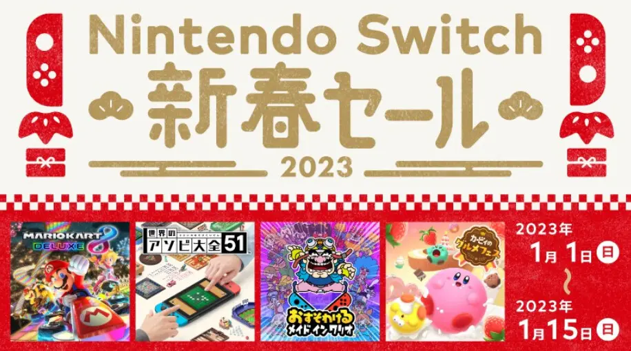 任天堂官方宣布,將在北京時間2022年12月31日23:00~2023年1月15日22:59期間,舉辦「Nintendo Switch新春折扣促銷」活動。