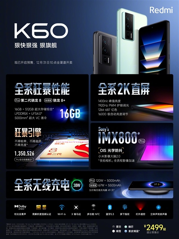 K60 Pro是為了最極致的性能,搭載了最新的第二代驍龍8,其他包括內存、散熱等方面也是非常極致。