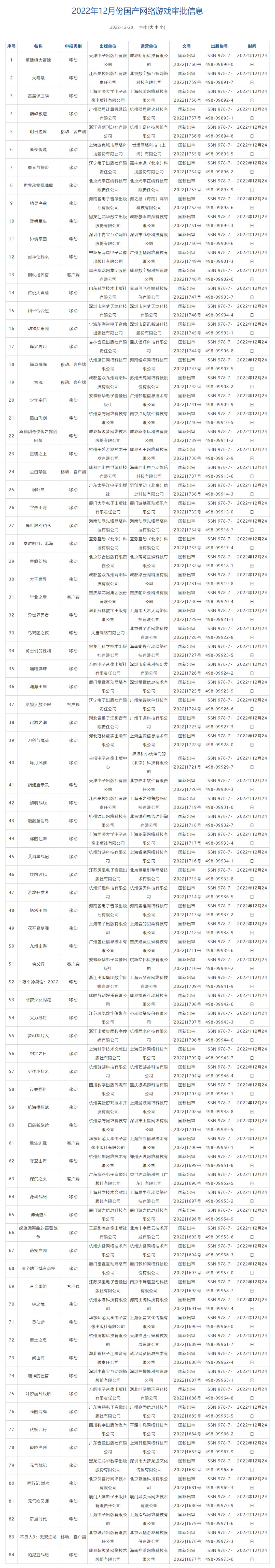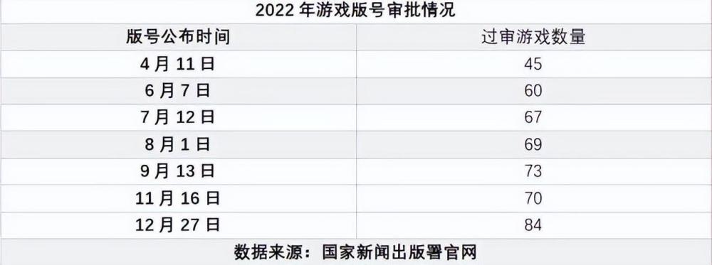 在經歷了長時間的游戲寒冬之後,國家新聞出版署終於放鬆了審核,2022年發放版號超過500款。12月28日更一次性通過了128款游戲的審批,其中不乏一些外國公司的游戲,中國游戲產業開始逐漸恢復。