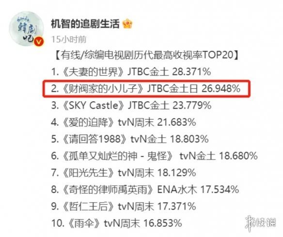 《財閥家的小兒子》大結局全國收視26.948%,實時收視更是飆到了51.12%,