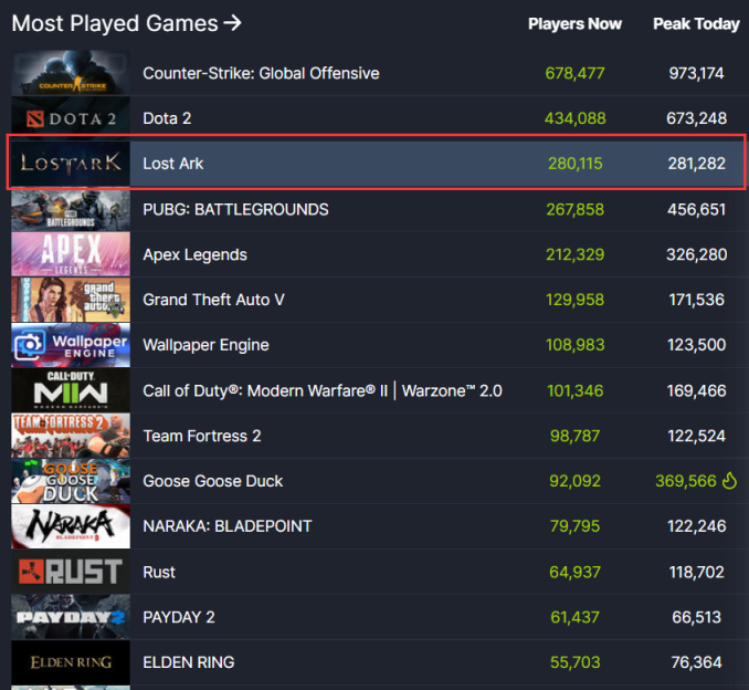 2022年在Steam非常火爆的奇幻MMORPG《失落的方舟》,這是一款長期霸榜Steam在線排行榜前十的熱門網游