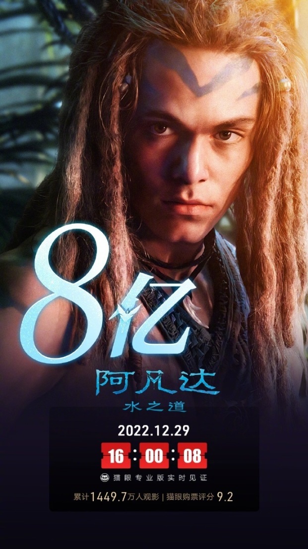 根據貓眼專業版消息,《阿凡達:水之道》上映第14天,票房突破8億元,累計1449.7萬人觀影