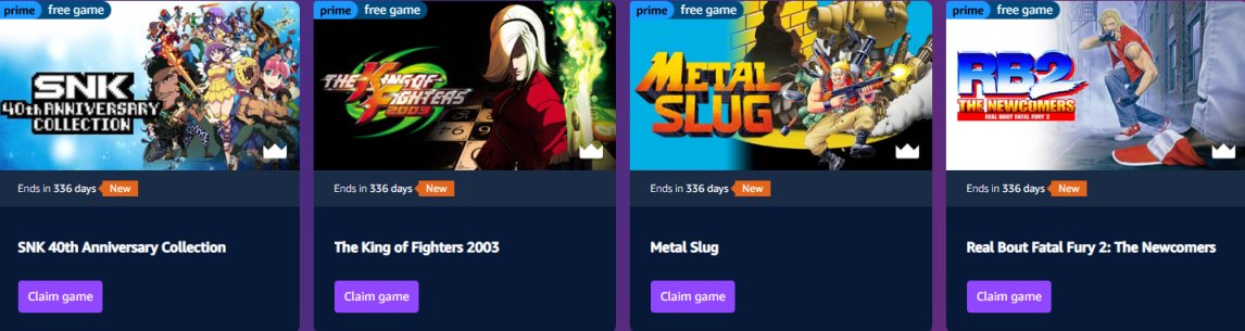 亞馬遜一直在提供各種免費遊戲,如《刺客信條:起源》、《輻射76》、《侍魂2》和《極品飛車:熱度》等;至 1 月 3 日,玩家能夠兌換 9 款 SNK 遊戲和經典第一人稱潛行遊戲《恥辱 2》: