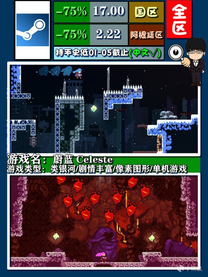 《蔚藍》,我的草莓,你在哪?ABC三面的難度選擇可供玩家反復刷,相比說它是類銀河,其實更多傾向於平台跳躍玩法,劇情足夠豐富,關卡設計方面難度較高