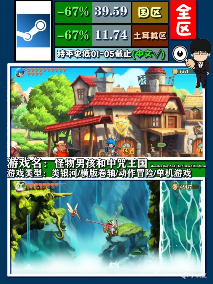 《怪物男孩和中咒王國》,有趣的靈活變身系統,可愛的日漫畫風,塞爾達式的解謎驅動地圖設計,馬里奧奧德賽類的收集,內容雖然多,但對於初體驗的玩家來說還是有些難度的