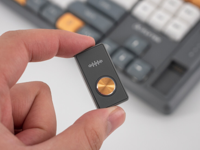 小語音夾通過藍牙和電腦連接,單獨使用的話據說有1.5天的續航時間,平時不用的話通過鍵盤上的觸點充電。
