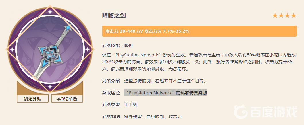 降臨之劍是「PlayStation Network」的玩家特典獎勵,武器技能 - 降世僅在「PlayStation Network」遊玩時生效。