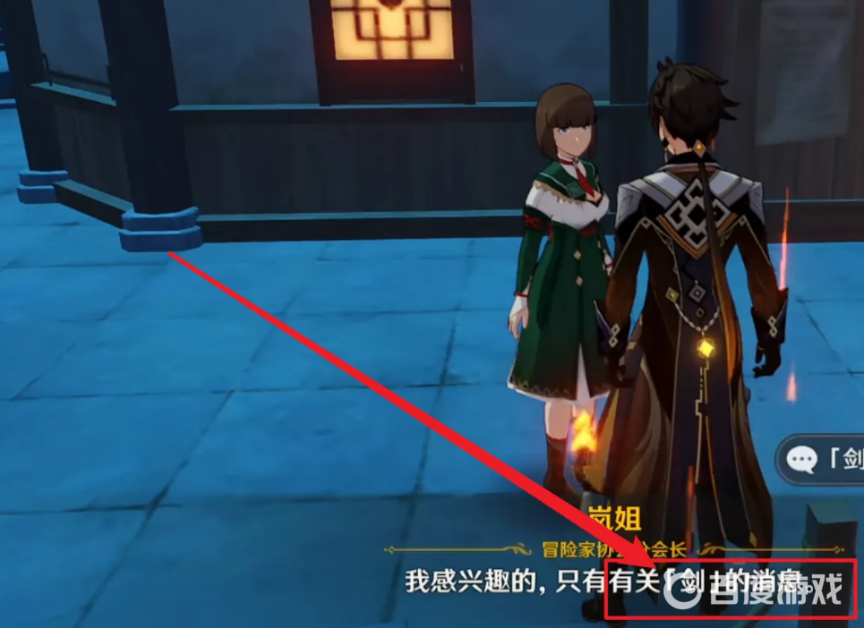 2、與嵐姐對話:在冒險家協會右側公告牌位置與【嵐姐】對話推進任務劇情。