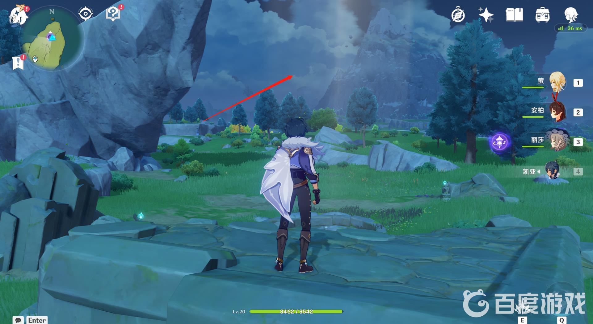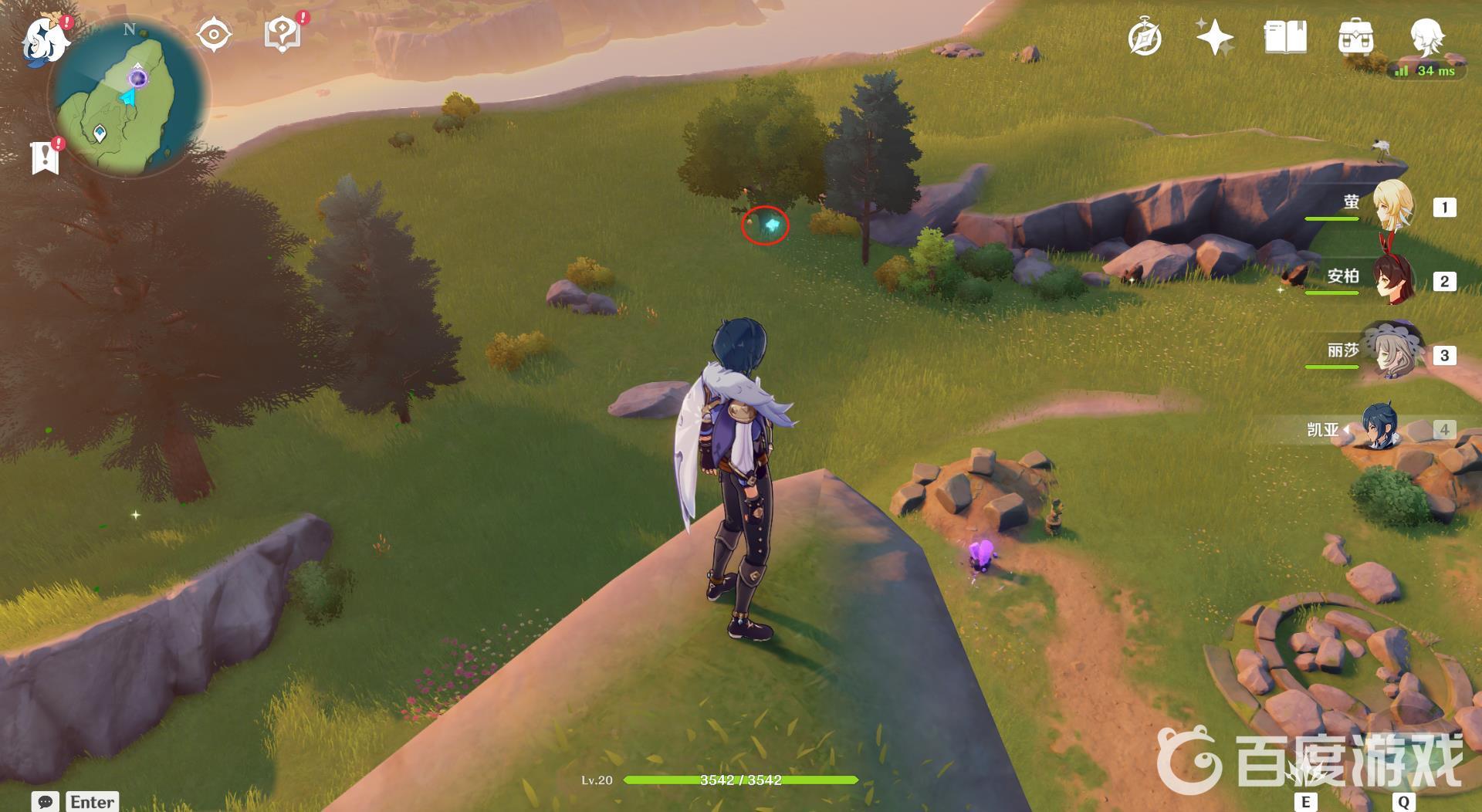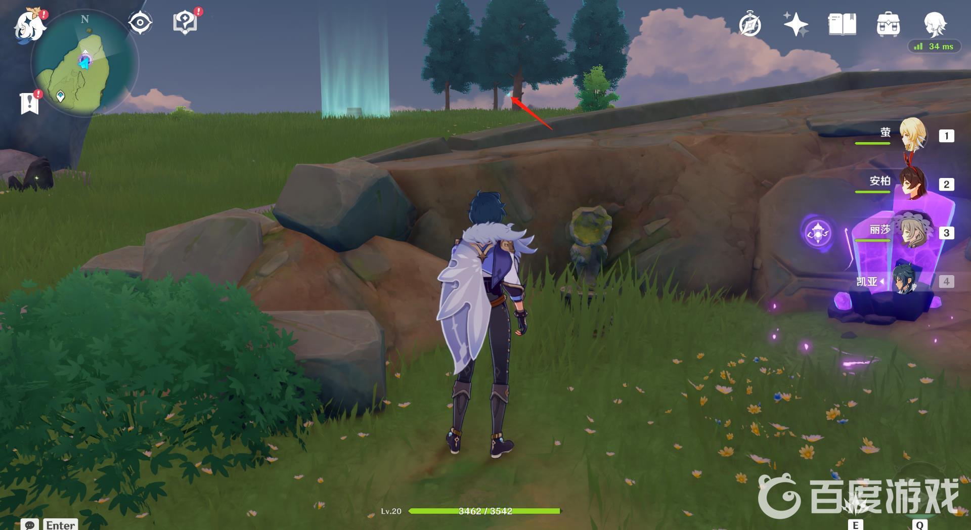4、這時在山丘上看向西北方向,向下方看去可以在樹下看到第二隻仙靈。