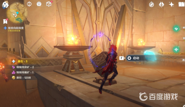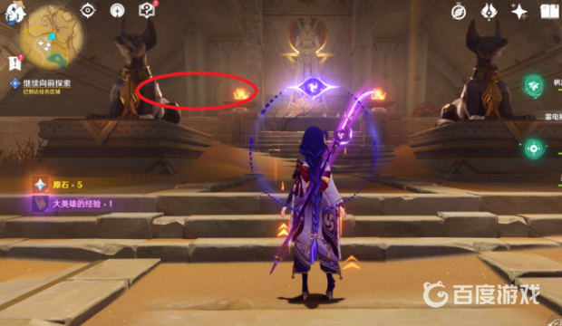 7、看到三乘種子票到右側破碎的火炬位置時,使用雷元素激化三相眾物,讓火炬現形,點燃所有的火把,將機關封印;