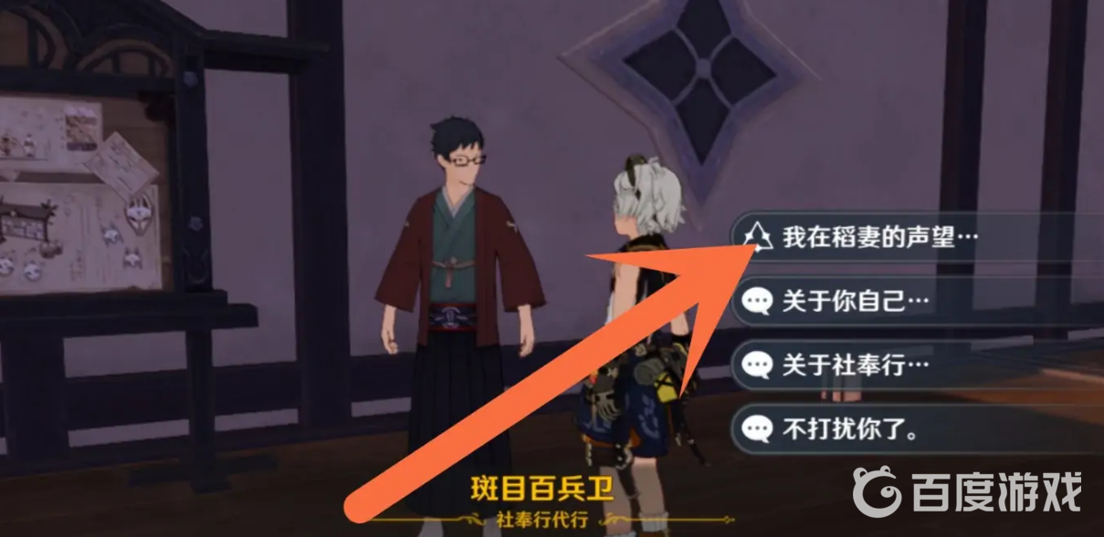 選擇我在稻妻的聲望:和他對話時,選擇【我在稻妻的聲望】。