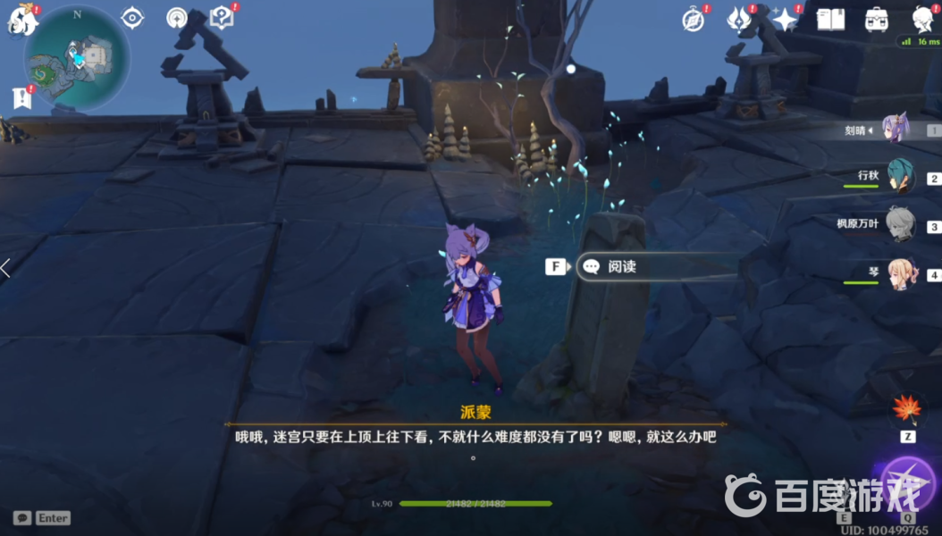 2、建議先解鎖此處區域在廢墟高處的傳送點,然後來到大致山腰處,這里有一塊石碑、一個『日月回輪』和兩個『三角的機關』。把『日月回輪』調整至『常夜』狀態下觀察迷宮如圖: