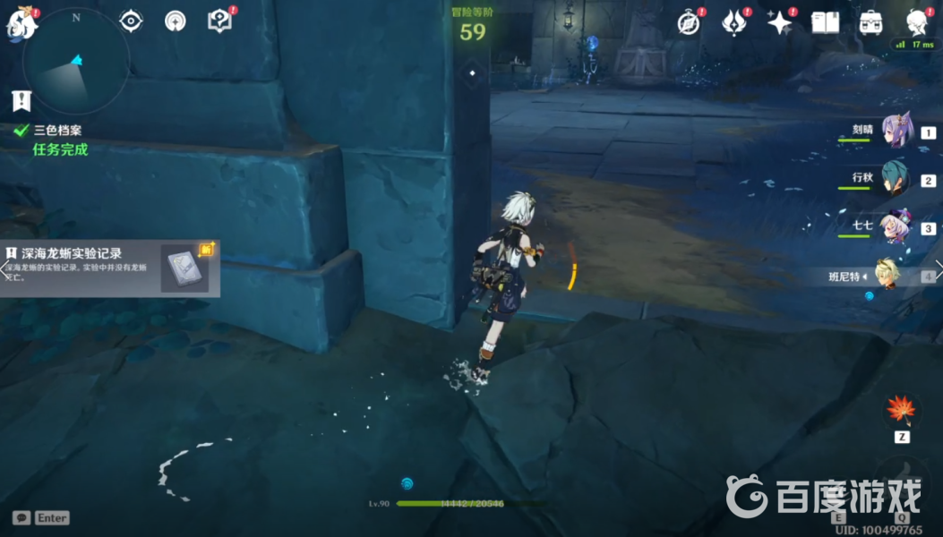 3、開啟任務【三色檔案】,與禁區內的殘影對話:隨後來到旁邊的研究所舊址內,分別使用對應的元素攻擊點亮三個元素柱子(冰/水/雷),戰勝出現三隻[深海龍蜥]。