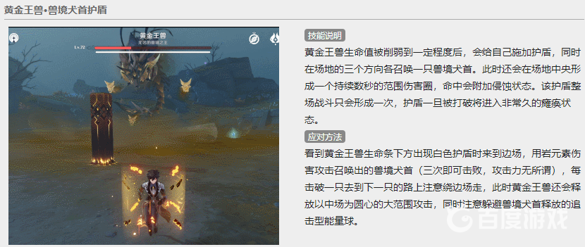 第六個是護盾。boss會給自己施加護盾,並召喚玉獸攻擊並附加侵蝕。玩家需要在躲避傷害的同時擊敗場地上的玉獸(推薦岩元素)。擊敗玉獸後,可以使boss癱瘓。