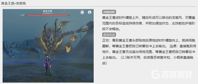 第二是龍卷風。boss形成一道龍卷風並附加侵蝕狀態,玩家可以繞著場地跑圈閃躲。