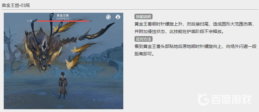 第一個是掃尾,形成大範圍傷害並且附加侵蝕狀態,玩家需要閃避一段距離才可。