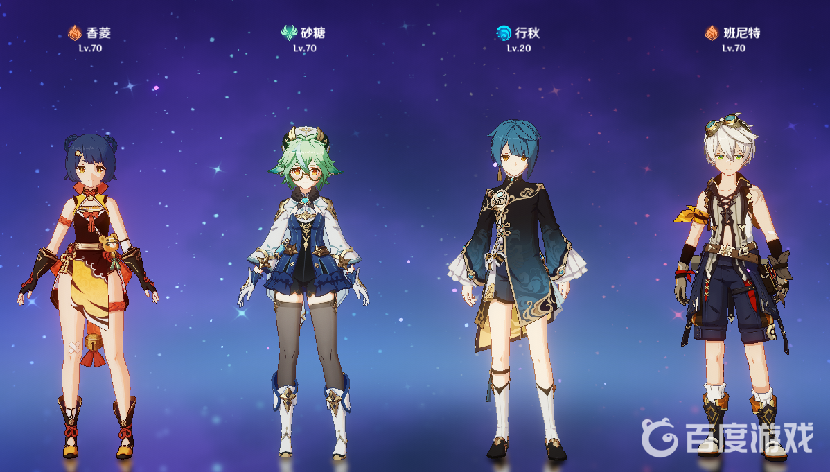 新手配隊二:香菱 砂糖 行秋 班尼特。同樣是雙火陣容,班尼特的增傷和香菱的脫手大,對群優勢很大。加上行秋帶來的蒸發反應和砂糖的聚怪減抗,整體的輸出傷害很強,也適合深淵。