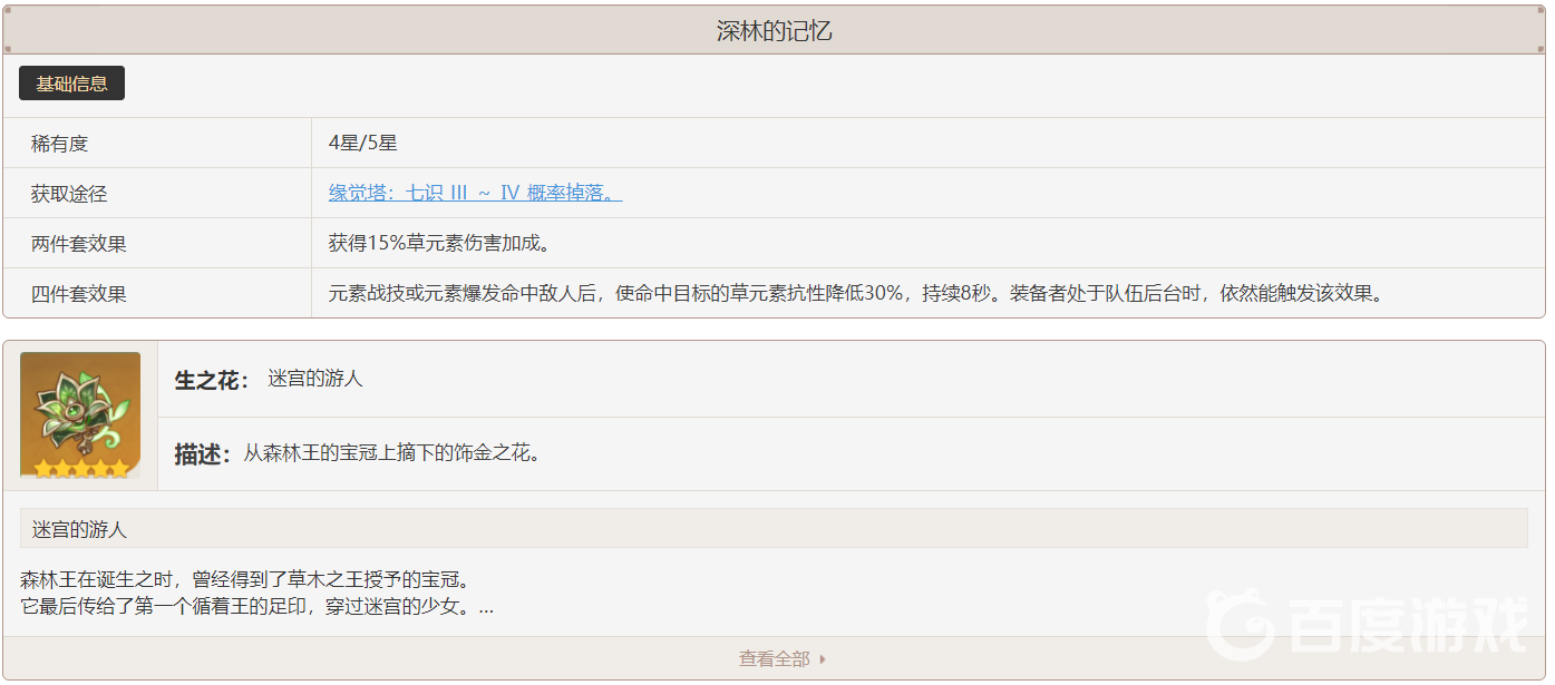 迷宮的遊人是深林的記憶中的生之花,在緣覺塔七識III~ Ⅳ有概率掉落。