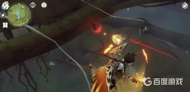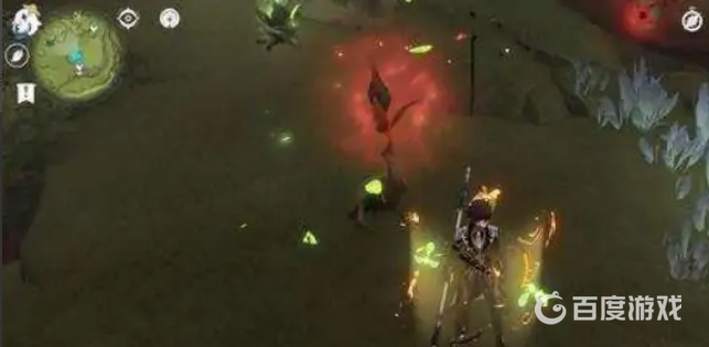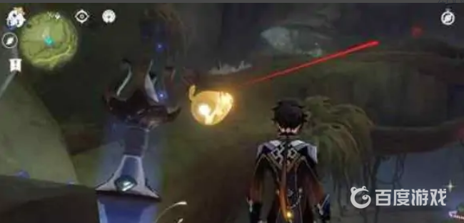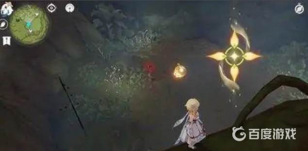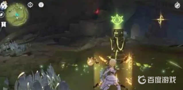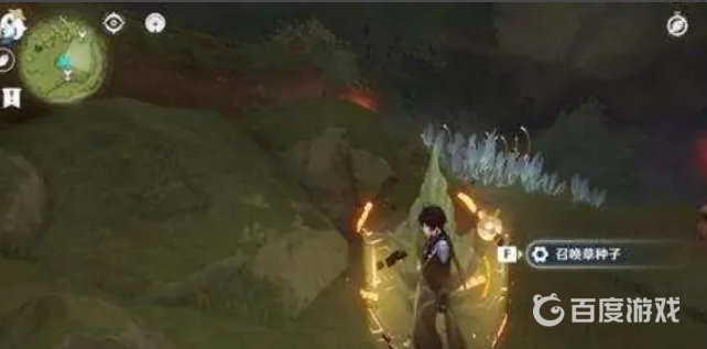 4、隨後朝著大樹根下方跳下去,去到西北方向的草元素方碑處。