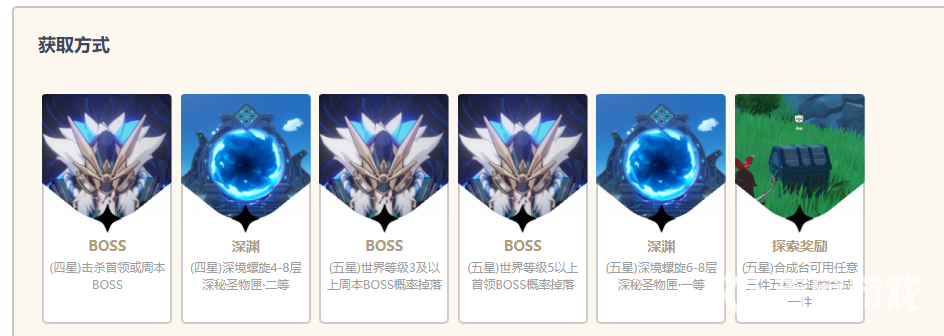 「流浪大地的樂團」獲取方式:(四星)擊殺首領或周本BOSS,(四星)深境螺旋4-8層深秘聖物匣·二等,(五星)世界等級3及以上周本BOSS概率掉落,(五星)世界等級5以上首領BOSS概率掉落,(五星)深境螺旋6-8層深秘聖物匣·一等,(五星)合成台可用任意三件五星聖遺物合成一件。